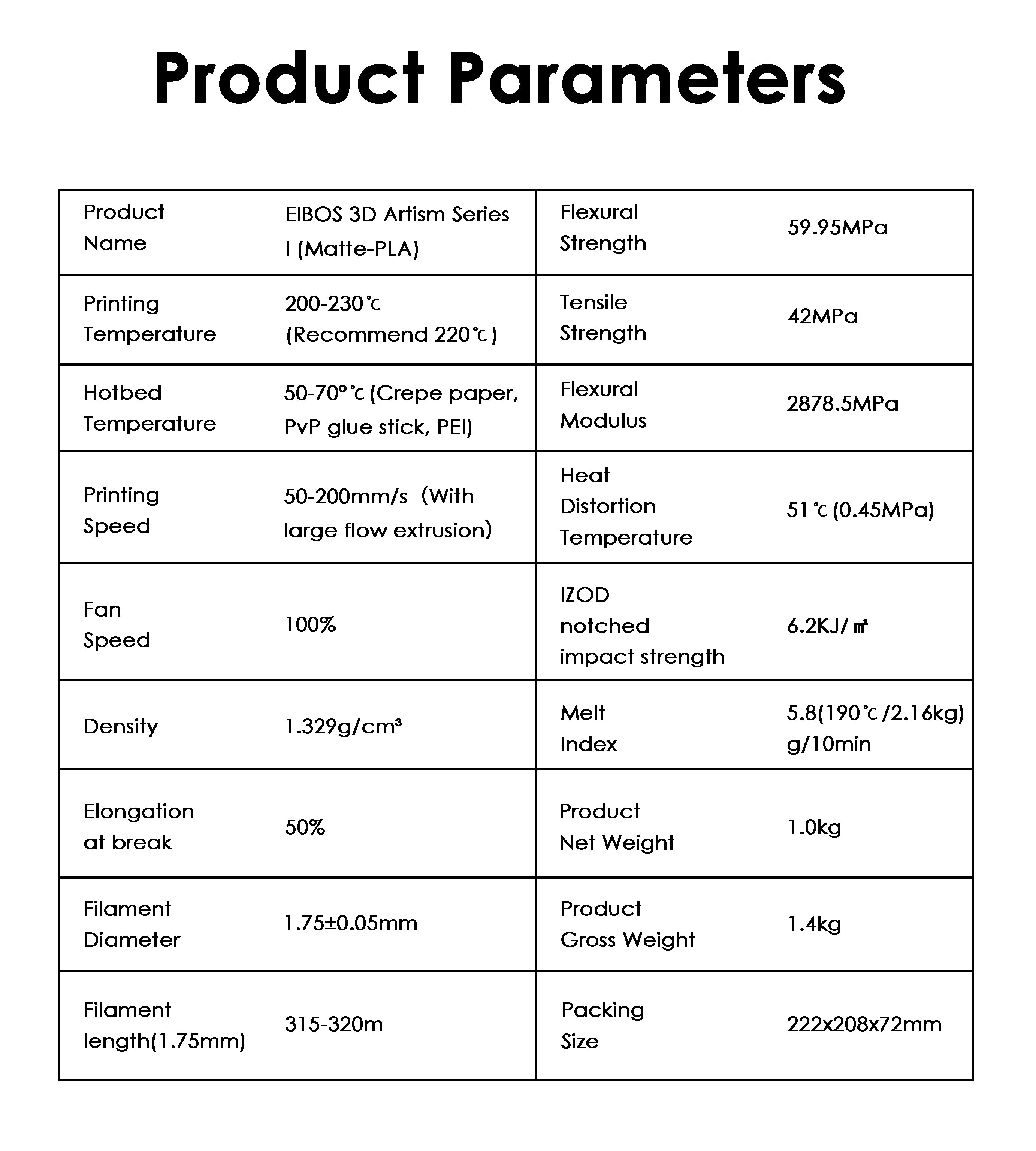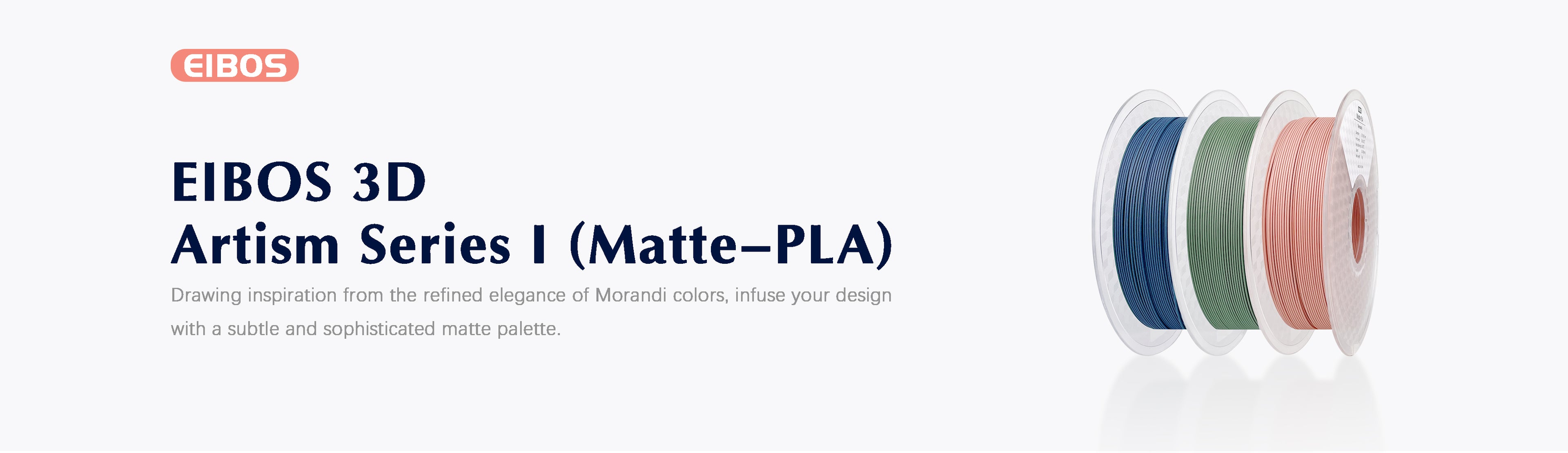 Erleben Sie die perfekte Mischung aus Kunst und Technologie mit EIBOS Filament Artism Series I. Unser mattes PLA-Filament ist in fünf wunderschönen Farben erhältlich, die von der Morandi-Farbpalette inspiriert sind, und ist damit die ideale Wahl für Künstler, Designer und alle, die ihre Kreationen zum Leben erwecken möchten. Mit seinem einzigartigen matten Finish, seiner zuverlässigen Leistung und seiner herausragenden Qualität ist EIBOS Filament Artism Series I die perfekte Ergänzung für jedes 3D-Druck-Setup. Beginnen Sie noch heute mit der Erstellung Ihrer Meisterwerke mit EIBOS Filament Artism Series I und erleben Sie den Unterschied!
