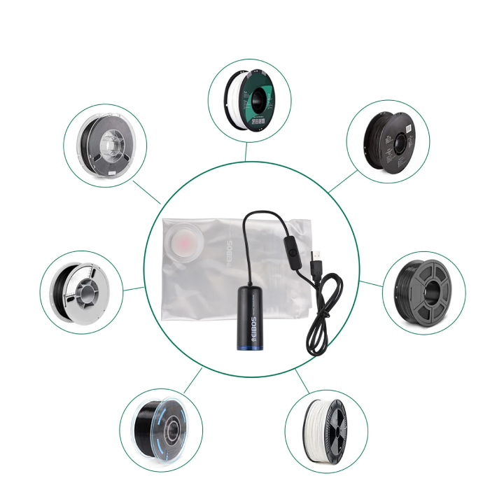 Using a EURUS vacuum pump in combination with a sealed bag can effectively protect your filaments from damage caused by moisture and other risks. This moisture-proof solution can provide comprehensive protection for your materials, allowing you to achieve the best results every time you print.