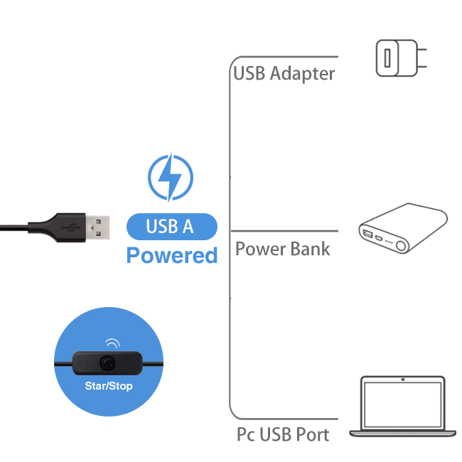EURUS is powered by a USB cable, which is highly compatible and easy to use. Whether it is connected to a computer, laptop, mobile phone charger, or mobile power bank, it can easily provide stable power support for the device.