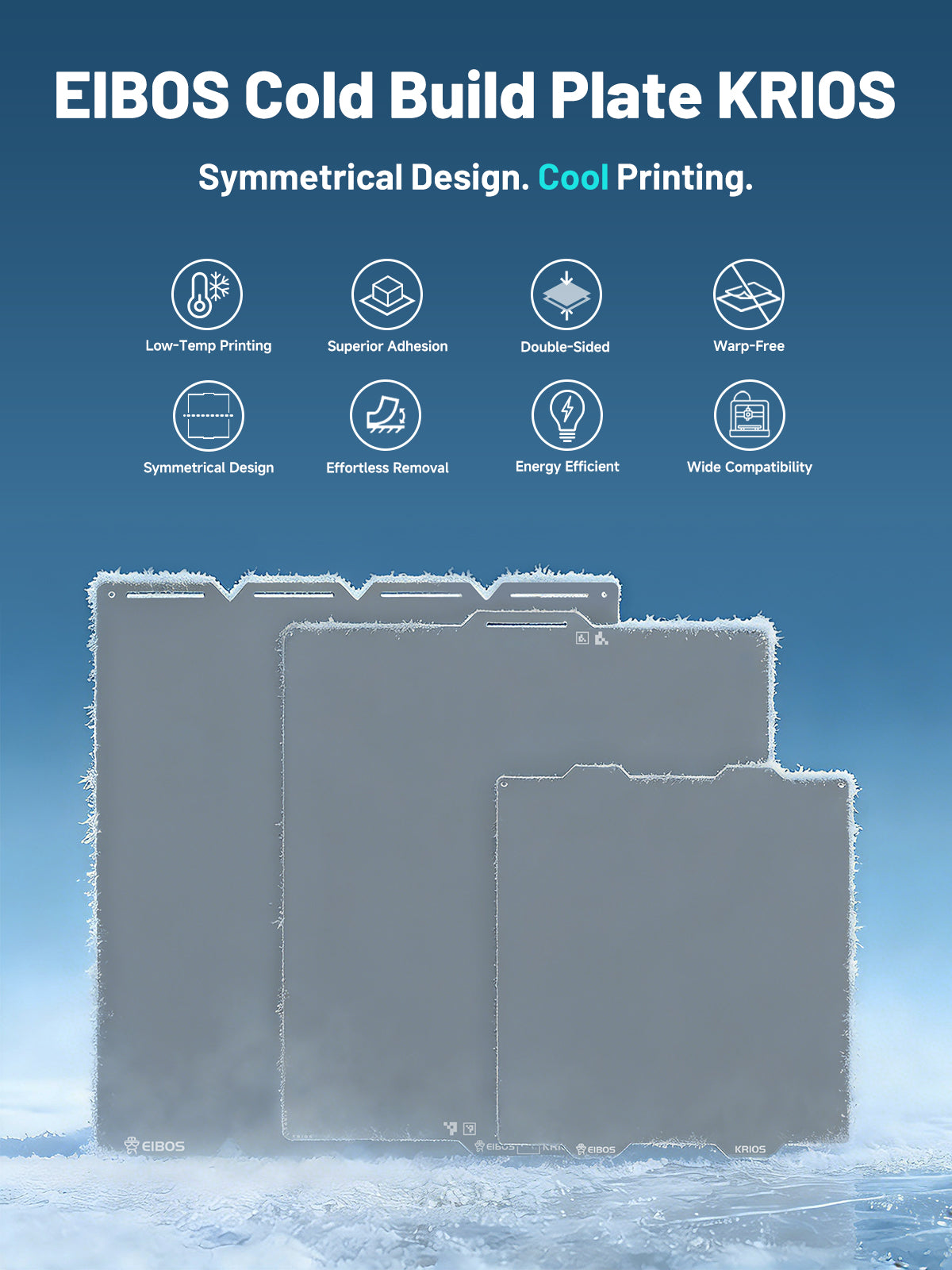 EIBOS Cold Build Plate KRIOS for Bambu X2D/P1S/P1P/P2S/X1C/X1E/A1 mini/A1 & Snapmaker U1 Printers