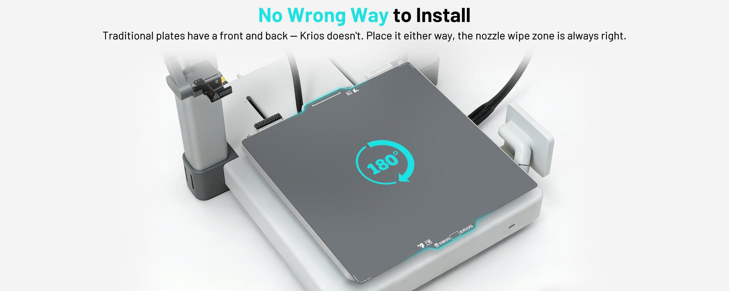 • Symmetrical Design: Krios features 4 nozzle wipe zones in a fully symmetrical layout. No front, no back — place it in either direction and the nozzle wipe zone is always in the correct position.