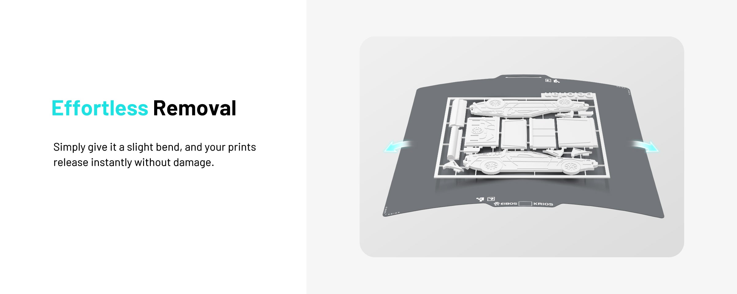 • Effortless Print Removal: Flex the plate after cooling and prints release cleanly. No scraper needed for most prints.