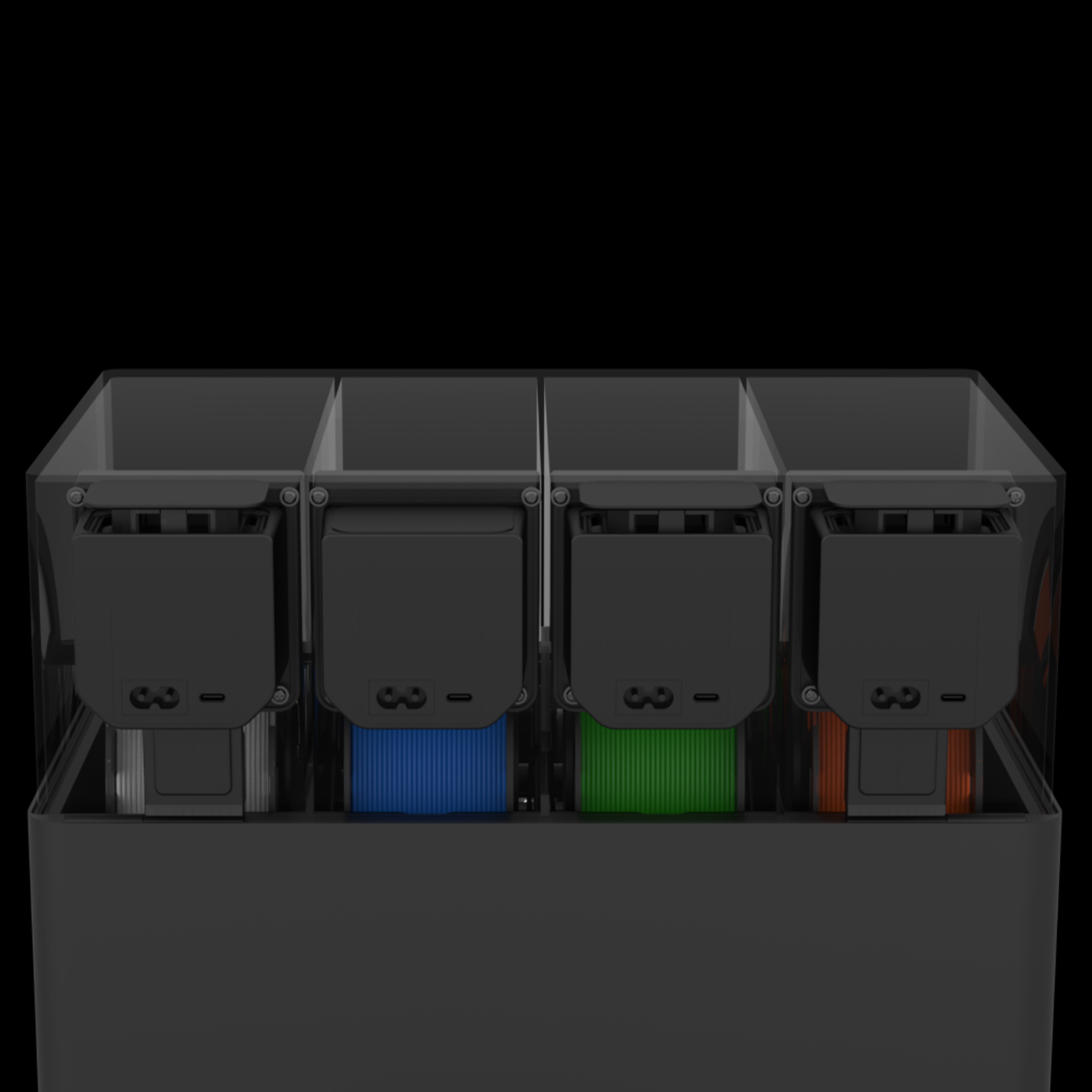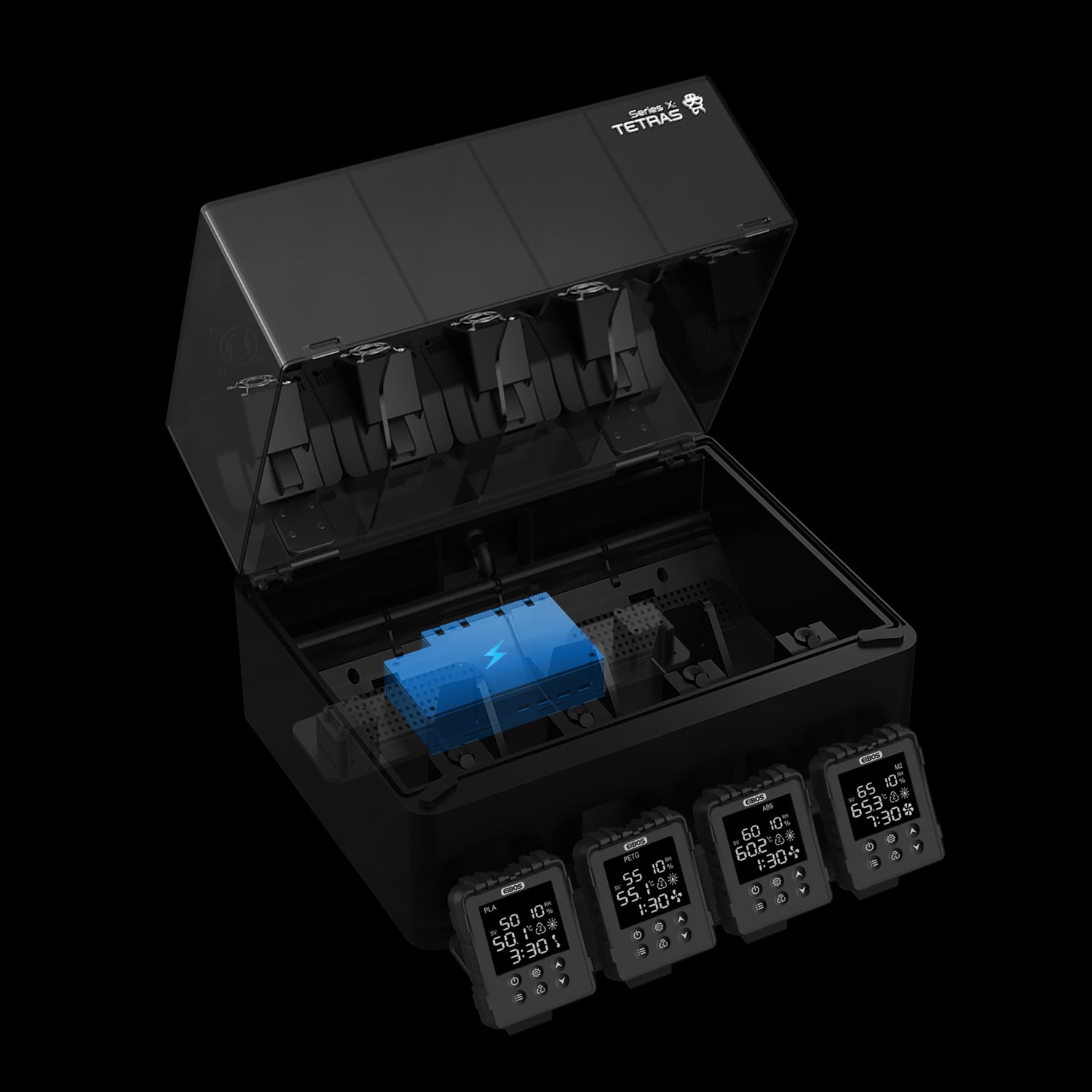 Tetras combines a high-efficiency moisture removal stage with a preheating stable stage that ensures the filament feeding, ensuring consistent performance from filament drying to finish the print.